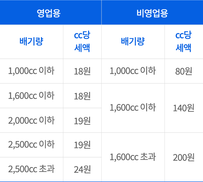 [비영업용]은 18,000원, [영업용]은 3,300원입니다.
