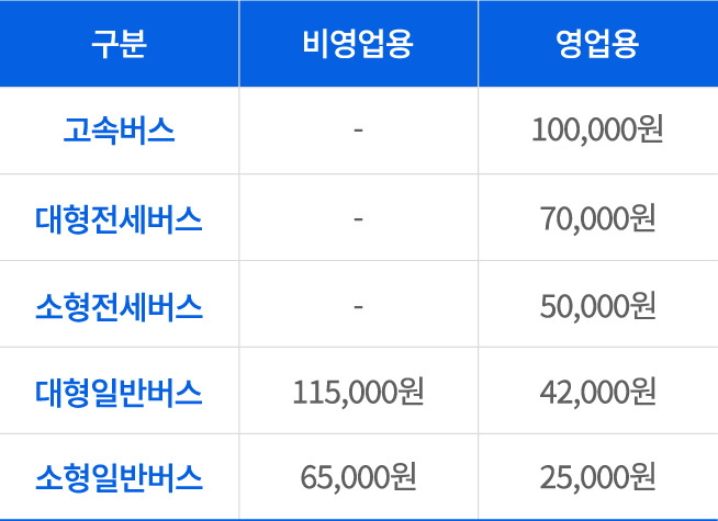 승합자동차(11인 이상 운송): 1대당 연세액(정액세)
